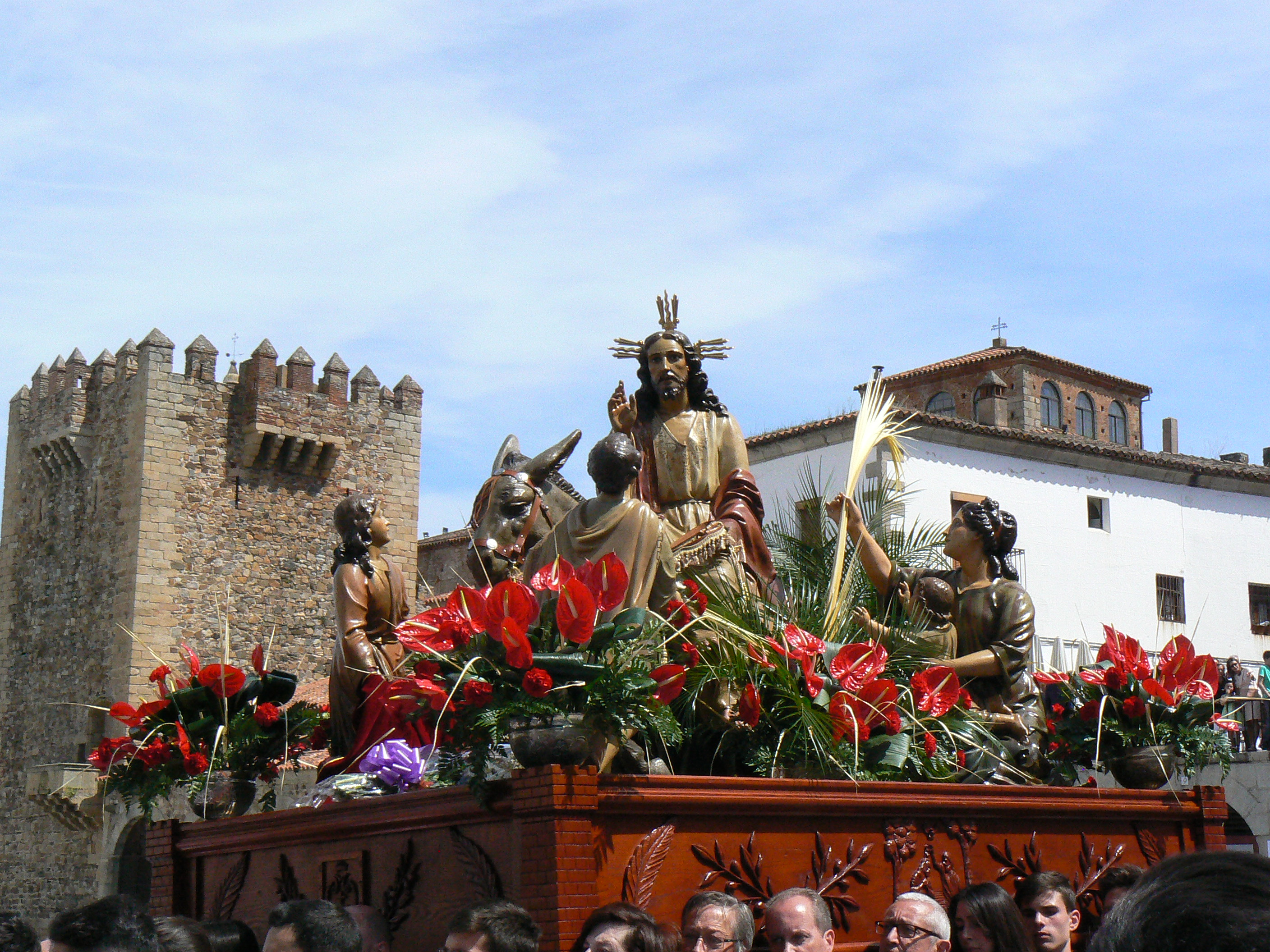 Iglesia de San Juan, plaza de San Juan (bendición de palmas), San Pedro, Donoso Cortés, Pizarro, Soledad, plaza de Santa Clara, Puerta de Mérida, Adarves de la Puerta de Mérida, del Padre Rosalío, de Santa Ana, de la Estrella, Arco de la Estrella, Plaza Mayor, Pintores, plaza de San Juan e Iglesia de San Juan.